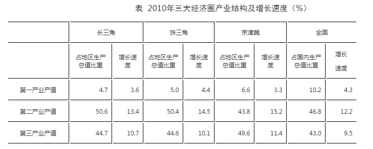 三大經濟圈中,2010年三次產業增長速度均超過全國平均水平的有幾個?