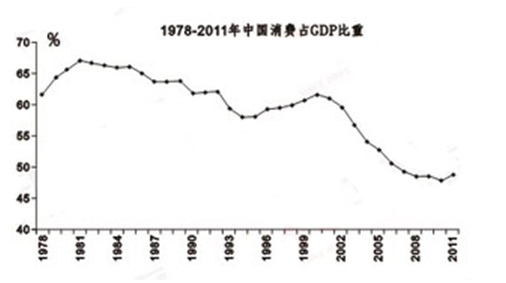 消費、投資、出口是拉動經濟增長的三駕馬車。其中,消費又是最主要的馬車,是GDP增長的主導因素。從國民經濟統計的角度看,最終消費包含兩部分,一部分是居民消費;另一部分是政府消費。有學者對1999——2008年我國31個省(市、自治區)的相關數據進行了分析,實證表明,從全國范圍來看,無論是城鎮、農村居民消費還是政府消費對經濟增長的影響都是顯著的,但三者對經濟增長的拉動程度不同,城鎮、農村居民消費和政府消費每增長1個單位,分別可以促進經濟增長0.59、0.49和0.23個單位。從我國居民消費占GDP的比重來看,近十年來不升反降,僅為35%,而世界其他主要經濟中心,這個數字都大于50%,歐洲是58%,日本是55%,美國高達72%。而自1978年以來,我國政府消費在最終消費中的占比幾乎每隔10年就要上一個臺階:80年代大約穩定在21%——23%;90年代上升并穩定在24%——25%;2000——2010年進一步提高到26%——27%;2011年已爬上28%。在1978——2011年的34年中,有22年政府消費的增速高于居民消費。